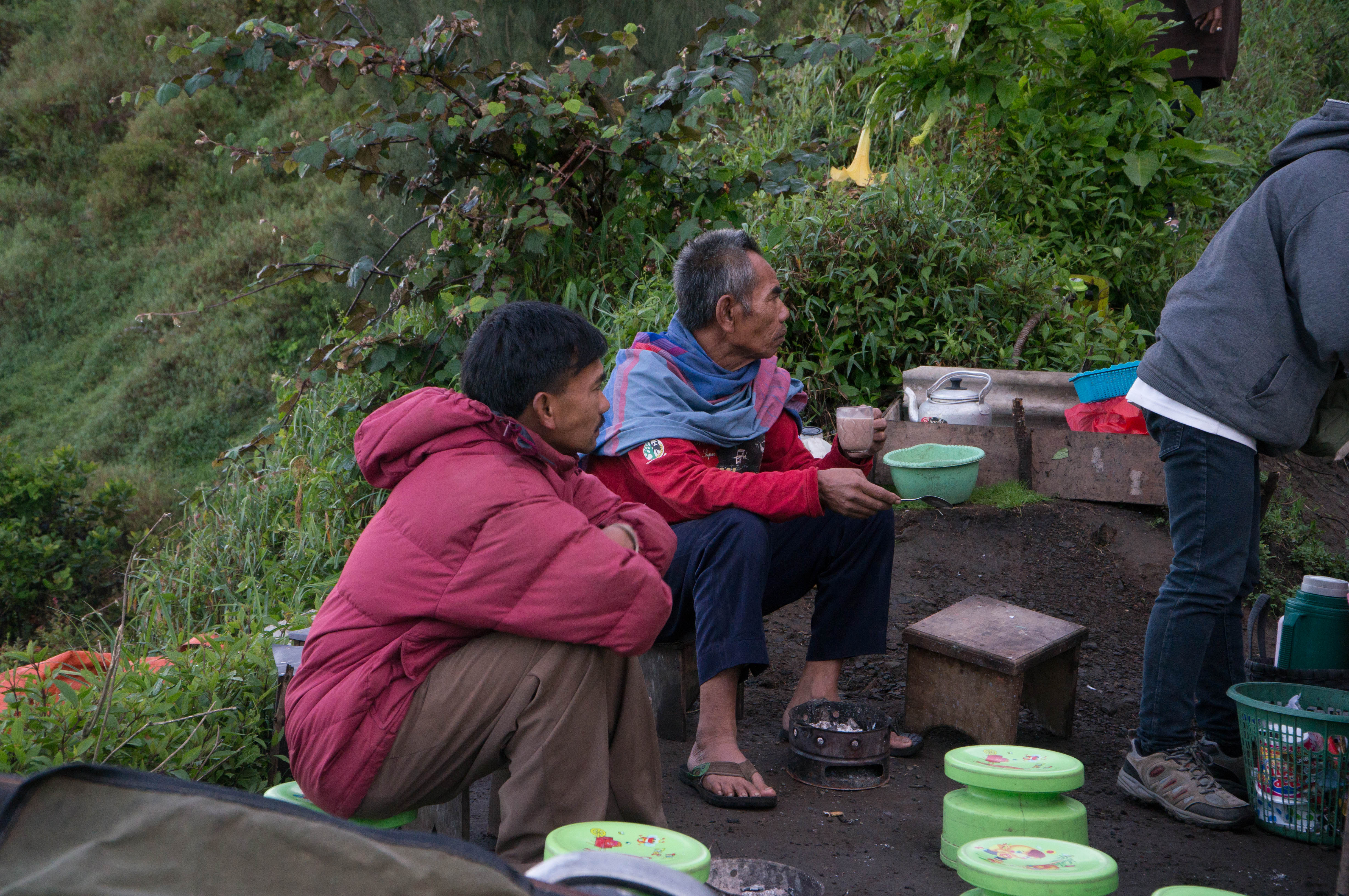 Locals selling coffee and tea along the road side.